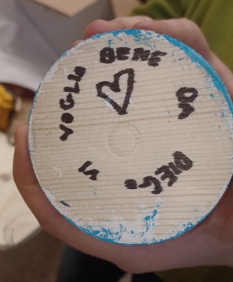 The project aimed to start a reflection with the students on the themes of reuse, solidarity, and hospitality. The first session introduced the initiative and helped them understand the deeper meaning behind their work. In the second phase, their teachers guided them in decorating the wooden ornaments made in our workshop. During the delivery, we were deeply moved to read the heartfelt messages of encouragement and holiday wishes they wrote for the children at Peter Pan.