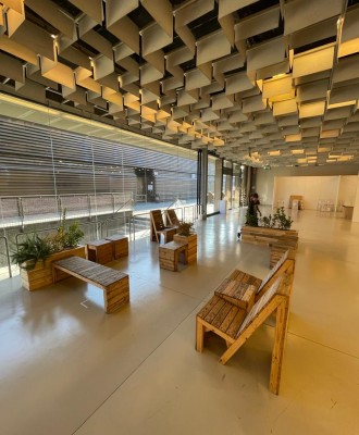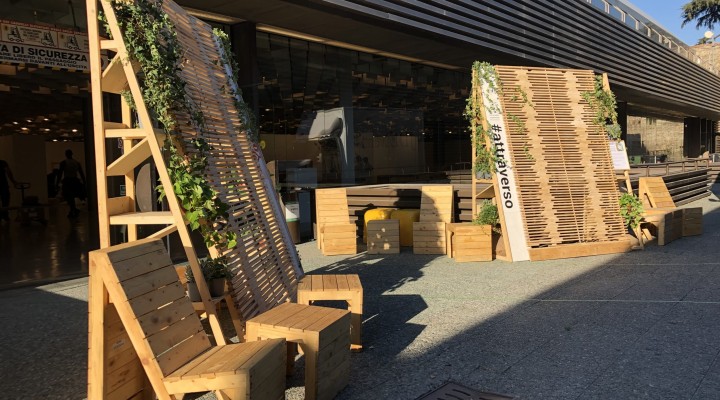 The XIV Florence Biennale offered Echo Labs a valuable opportunity to showcase its resource reuse philosophy by furnishing several exhibition areas with pieces made from wood recovered from end-of-life logistics materials. Seating areas in the lounge zones and a bookshop—entirely built from crates used for transporting artworks—provided visitors with a moment of rest and a chance to reflect on the endless potential of available resources.