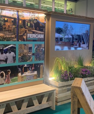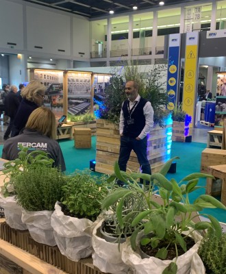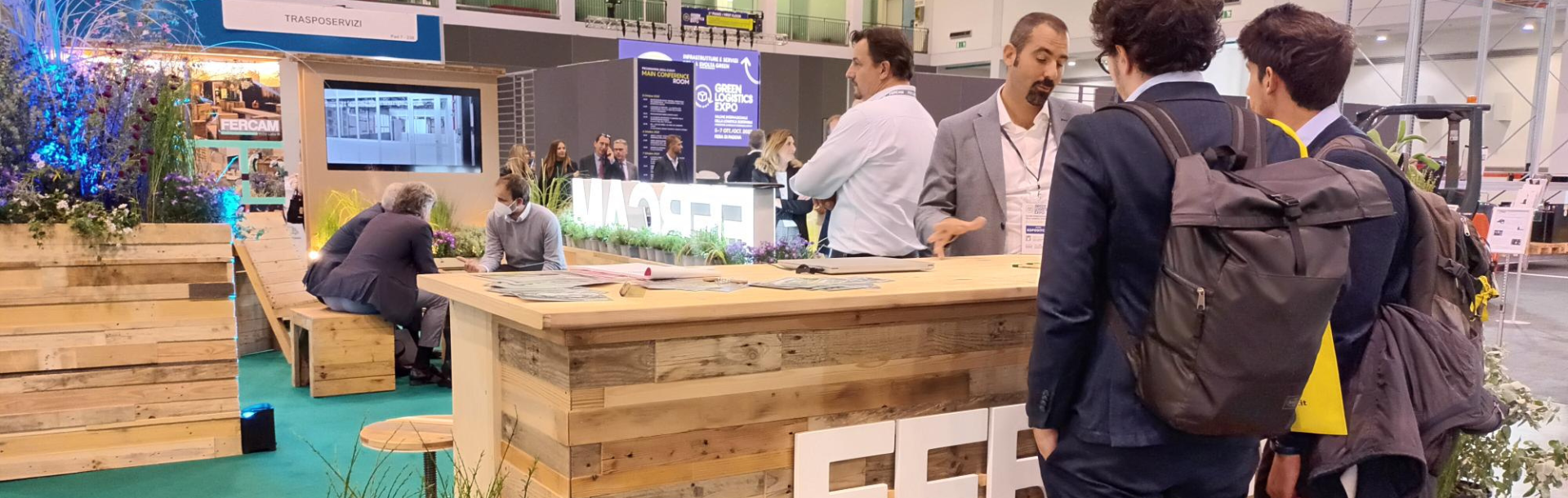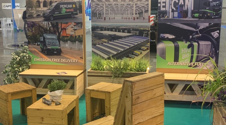 At the Green Logistics Expo in Padua, FERCAM SpA’s booth featured an exhibition space built entirely from reused materials—cardboard and reclaimed pallet wood—and included green islands composed of aromatic plants, herbs, and flowers. At the end of the event, all the plants were transplanted into biodiversity areas located at various FERCAM branches.