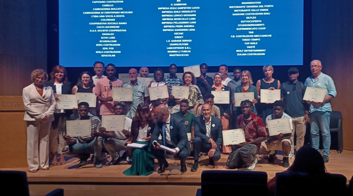 Alla cerimonia ufficiale presso l’Università LUISS di Roma, ha partecipato in rappresentanza di Echo Labs: Claudia Coscarella, Project Manager; Dino Menichetti, Presidente; e Fanto Samake, 20 anni, originario del Mali, vive in Italia da quasi tre anni, ed è oggi parte del team della falegnameria sociale. Fanto, come i suoi colleghi, ha intrapreso con Echo Labs un percorso di crescita e professionalizzazione nella lavorazione del legno, affermandosi oggi come figure di riferimento del progetto.
